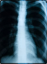 Patients who cannot stand may be positioned lying down on a table for chest x-rays.